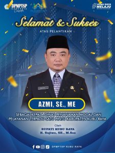 Keluarga Besar DPMPTSP Kubu Raya mengucapkan Selamat & Sukses atas pelantikan Bapak Azmi, SE., ME. Sebagai Kepala Dinas Penanaman Modal dan Pelayanan Terpadu Satu Pintu