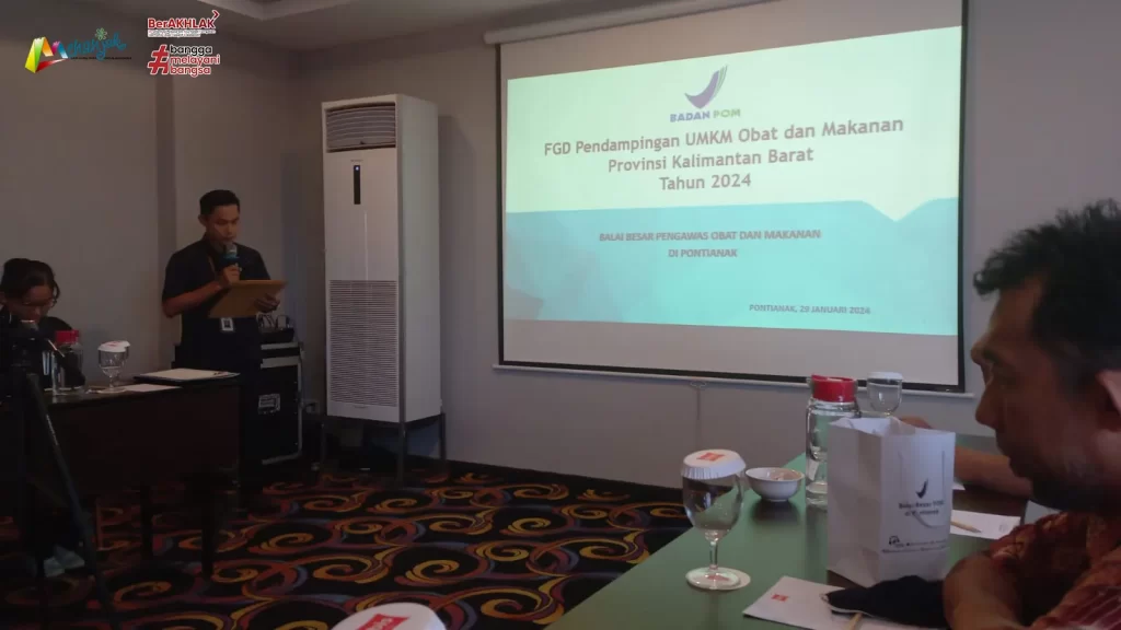 Penata Perijinan Ahli Muda Dinas Penanaman Modal dan Pelayanan Terpadu Satu Pintu (DPMPTSP) Kabupaten Kubu Raya, Bapak Jimmi Ibrahim, SE, MM mengikuti kegiatan FGD ( Focus Group Discussion ) Pendampingan UMKM Obat dan Makanan Provinsi Kalbar Tahun 2024 yang diselenggarakn oleh BBPOM Pontianak di Hotel Ibis Pontianak, Senin 29 Januari 2024.