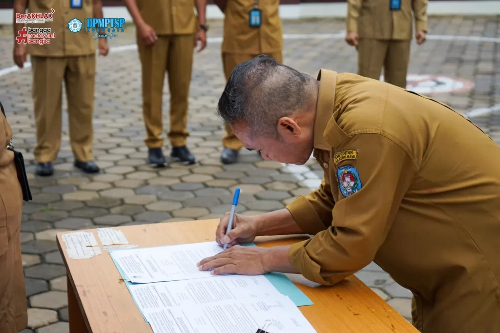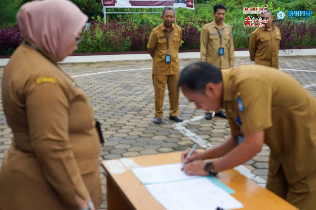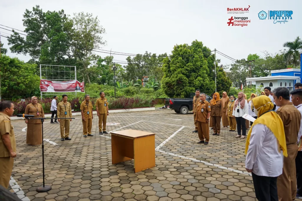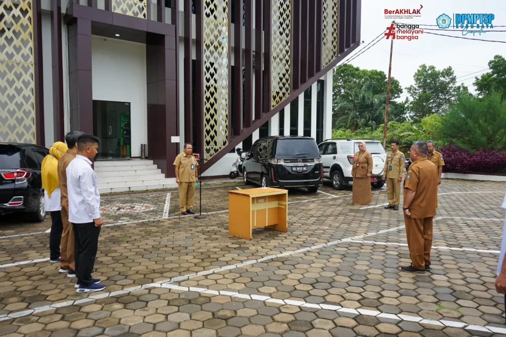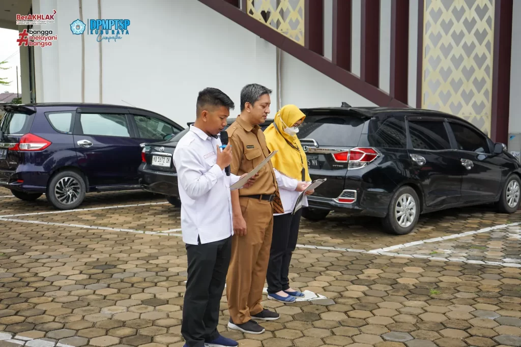 Dinas Penanaman Modal dan Pelayanan Terpadu Satu Pintu ( DPMPTSP ) Kabupaten Kubu Raya melaksanakan kegiatan rutin Apel Senin pagi dihalaman Mal Pelayanan Publik Kabupaten Kubu Raya. Apel pagi dipimpin oleh Sekretaris DPMPTSP Kubu Raya Bapak H. M. Yusuf, S.SOS, M.Si. Setelah melaksanakan Apel, dilanjutkan dengan kegiatan Penandatanganan Pakta Integritas Barang Milik Daerah yang dipimpin langsung oleh Kepala DPMPTSP Kubu Raya, Ibu Maria Agustina, SE, M.Si. Kegiatan dilaksanakan pada hari Senin, 29 April 2024.