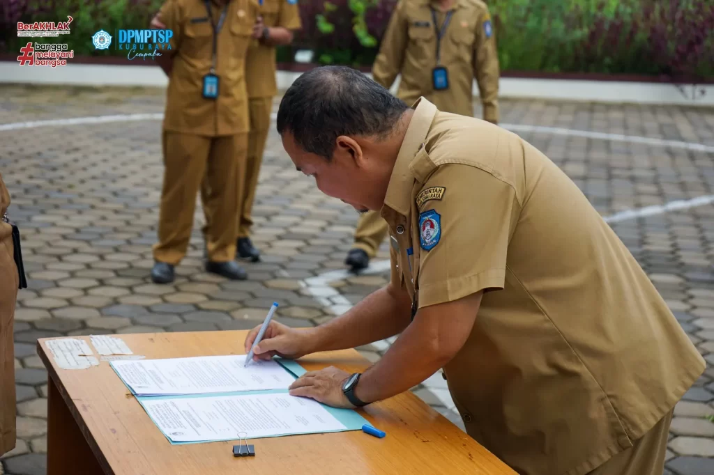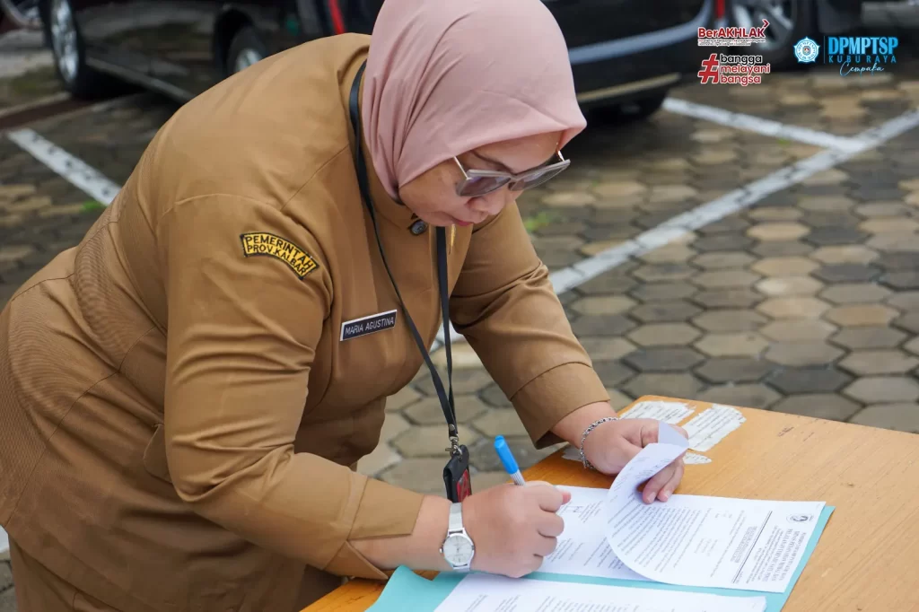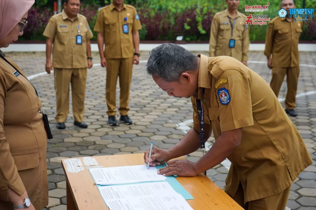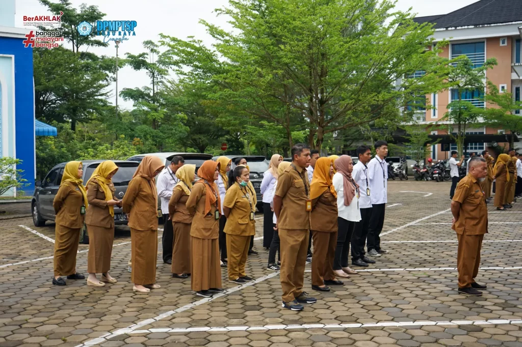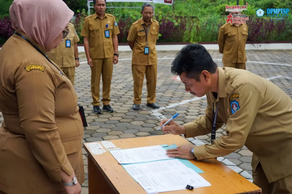 Dinas Penanaman Modal dan Pelayanan Terpadu Satu Pintu ( DPMPTSP ) Kabupaten Kubu Raya melaksanakan kegiatan rutin Apel Senin pagi dihalaman Mal Pelayanan Publik Kabupaten Kubu Raya. Apel pagi dipimpin oleh Sekretaris DPMPTSP Kubu Raya Bapak H. M. Yusuf, S.SOS, M.Si. Setelah melaksanakan Apel, dilanjutkan dengan kegiatan Penandatanganan Pakta Integritas Barang Milik Daerah yang dipimpin langsung oleh Kepala DPMPTSP Kubu Raya, Ibu Maria Agustina, SE, M.Si. Kegiatan dilaksanakan pada hari Senin, 29 April 2024.
