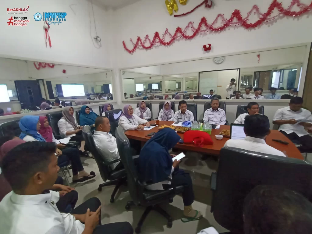 Dinas Penanaman Modal dan Pelayanan Terpadu Satu Pintu (DPMPTSP) Kabupaten Kubu Raya melaksanakan kegiatan Rapat Evaluasi Pencapaian Kinerja serta Penyerapan Anggaran TW 1 dan sampai dengan bulan April 2024. Kegiatan dilaksanakan pada hari Rabu, 8 Mei 2024 bertempat di Ruang Rapat Cempaka Utama. Kegiatan dipimpin langsung oleh Kepala DPMPTSP Kubu Raya Ibu Maria Agustina, SE, M.Si serta dihadiri oleh seluruh Pejabat dan Staf DPMPTSP Kubu Raya.