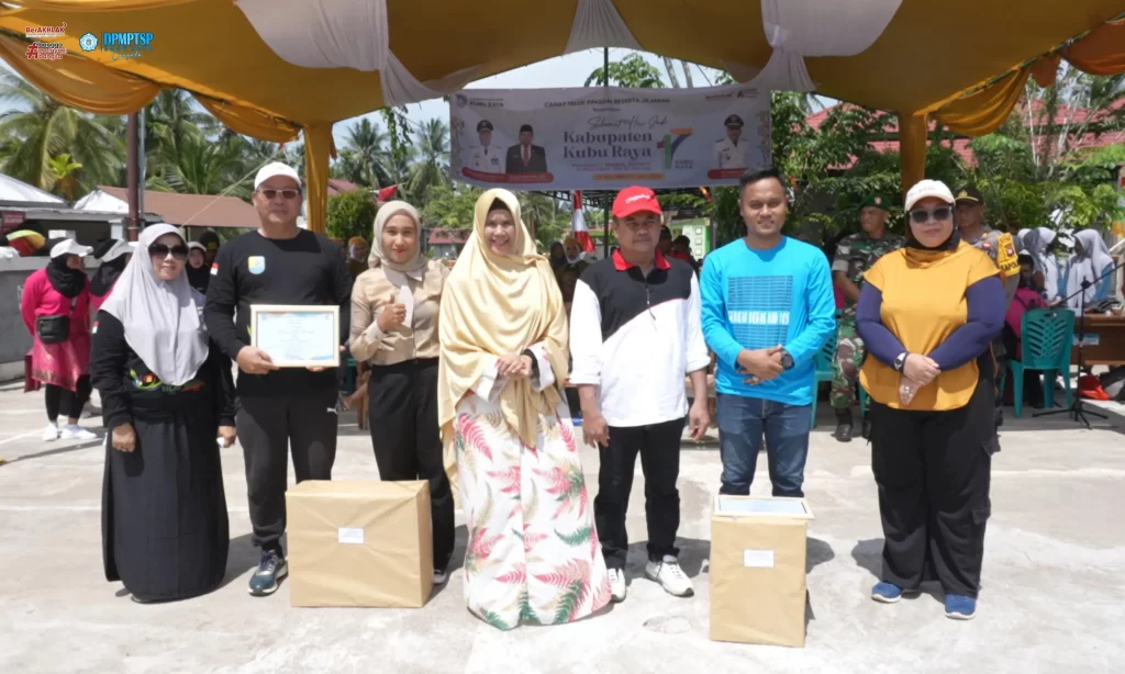 Kepala Dinas Penanaman Modal dan Pelayanan Terpadu Satu Pintu ( DPMPTSP ) Kabupaten Kubu Raya, Ibu Maria Agustina, SE, M.Si mengikuti Semarak Kegiatan dalam Rangka Hari Ulang Tahun (HUT) Kabupaten Kubu Raya ke 17 pada hari Sabtu, 13 Juli 2024. Kegiatan semarak ini dilaksanakan di Kecamatan Teluk Pakedai.