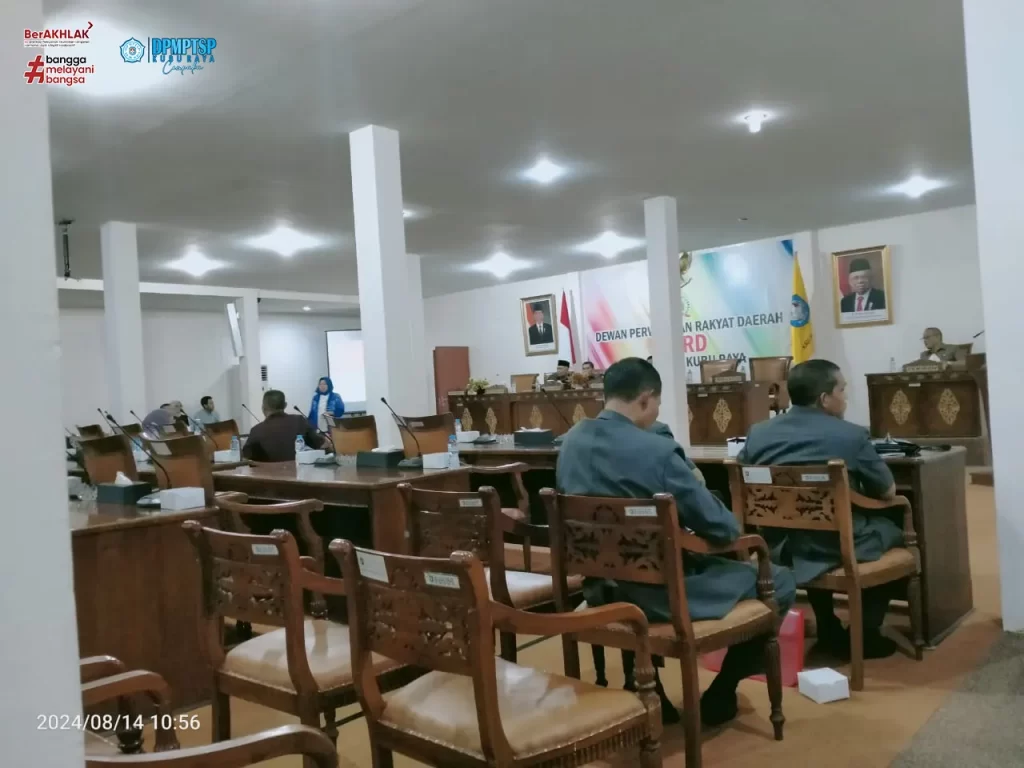 Penata Kelola Penanaman Modal Ahli Madya, Bapak Herdi, S.ST, M.Sos mewakili Kepala DPMPTSP Kubu Raya dalam menghadiri kegiatan Rapat Terkait Pandangan Umum Fraksi Fraksi Mengenai RAPBD ( Rancangan Anggaran Pendapatan dan Belanja Daerah ) Tahun 2024. Kegiatan di laksanakan pada hari Rabu, 14 Agustus 2024 di gedung DPRD Kabupaten Kubu Raya.