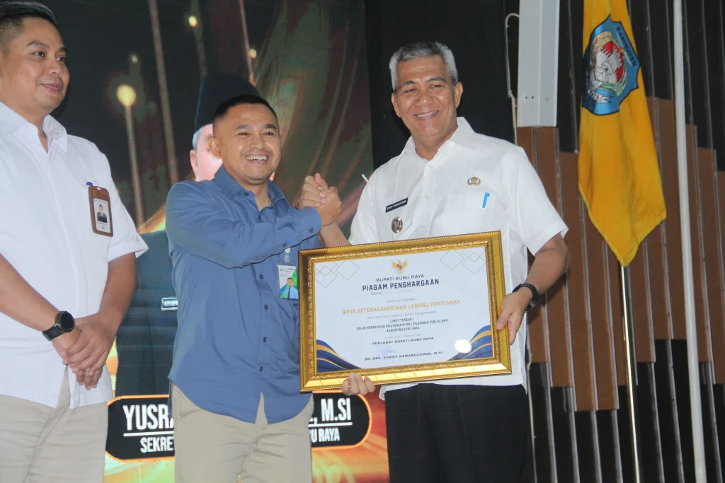 Bersama Kapolres Wahyu Jati Wibowo dan Sekretaris Daerah Yusran Anizam, Pj Bupati Syarif Kamaruzaman menyerahkan penghargaan Loket Terbaik I kepada BPJS Ketenagakerjaan, Loket Terbaik II Bank Kalbar Kubu Raya, dan Loket Terbaik III Bapenda Kubu Raya. Adapun Loket Terfavorit Bapenda Kubu Raya dan Petugas Layanan Terbaik Anggi Saputri (BPJS Ketenagakerjaan).