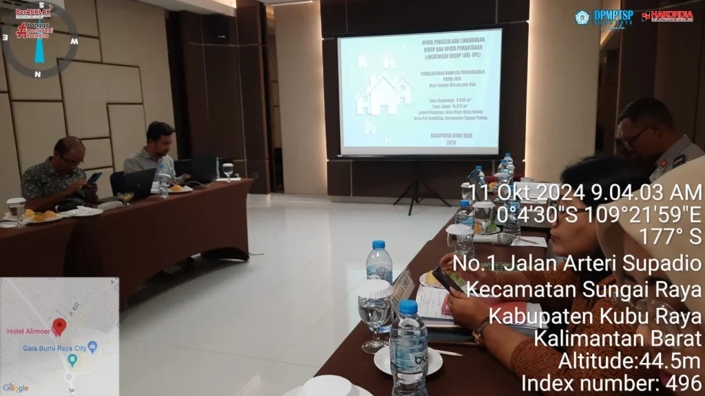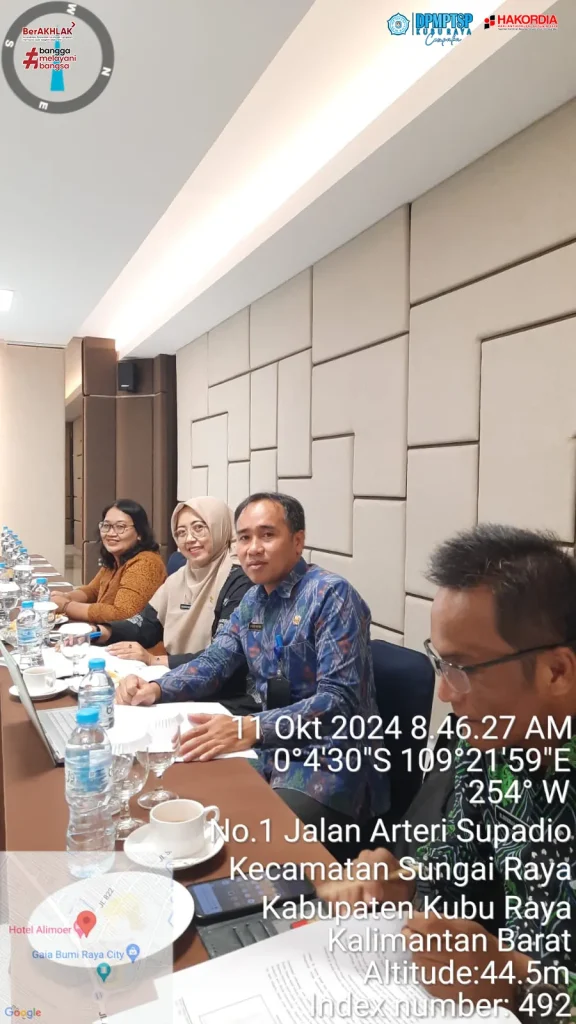 Penata Perijinan Ahli Madya DPMPTSP Kubu Raya, Bapak Khatim Asy’ari, ST, MT Mewakili Kadis DPMTSP Kubu Raya menghadiri rapat Pembahasan Formulir UKL UPL pembangunan komp. Pergudangan Prisma Jaya lokasi Desa pal IX kec. Sungai Kakap Kab. Kubu Raya. Kegiatan dilaksanakan pada hari Jumat, 11 Oktober 2024