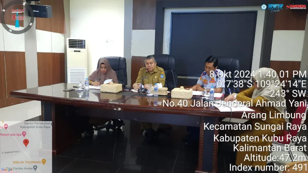 Penata Perijinan Ahli Madya DPMPTSP Kubu Raya, Bapak Khatim Asy’ari, ST, MT mewakili Kepala DPMTPSP Kubu Raya dalam kegiatan Rapat pembahasan mengenai usulan perubahan pengelolaan dan perpanjangan sewa Pemanfaatan tanah dalam pelabuhan Penyeberangan Rasau Jaya untuk kegiatan SPBN PT. ADIL MAKMUR PERSADA. Kegiatan dilaksanakan pada hari Selasa, 8 Oktober 2024.