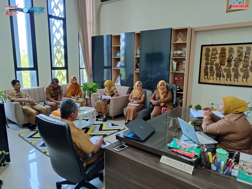 Kepala Dinas Penanaman Modal dan Pelayanan Terpadu Satu Pintu (DPMPTSP) Kabupaten Kubu Raya, Ibu Maria Agustina, SE, M.Si mengadakan diskusi ringan untuk membuat langkah kerja peningkatan Penanaman Modal di KKR guna memberikan arahan kepada Pejabat dan Staf Penanaman Modal untuk menindaklanjuti hasil Rakornas dan Arahan Presiden dan Wakil Presiden Implementasi Astacita menuju Indonesia Emas 2045 di Jakarta. Kegiatan diskusi ini dilaksanakan pada hari Senin, 11 November 2024 di Ruang Kepala DPMPTSP Kubu Raya.