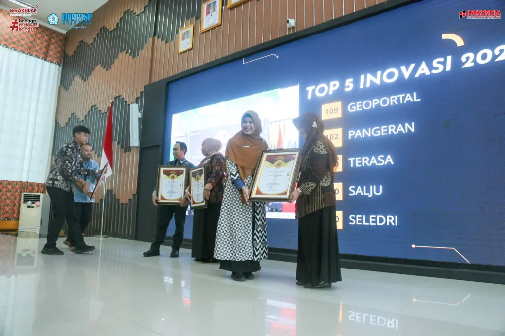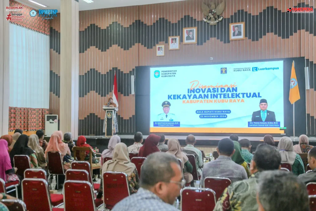 Kepala DPMPTSP Kabupaten Kubu Raya Ibu Maria Agustina, SE, M. Si mengahadiri acara Diseminasi Inovasi dan Kekayaan Intelektual Kabupaten Kubu Raya dan Menerima Piagam Penghargaan Innovative Government Award (IGA) Penghargaan tersebut diberikan sebagai bentuk apresiasi atas kontribusi dalam mendorong terciptanya inovasi yang berdampak positif bagi pembangunan daerah dan peningkatan pelayanan publik, DPMPTSP KKR dengan Inovasi “Temu Para Pelaku Usaha (Terasa)” mendapatkan nilai 100. Kegiatan dilaksanakan pada hari Jumat, 22 November 2024.