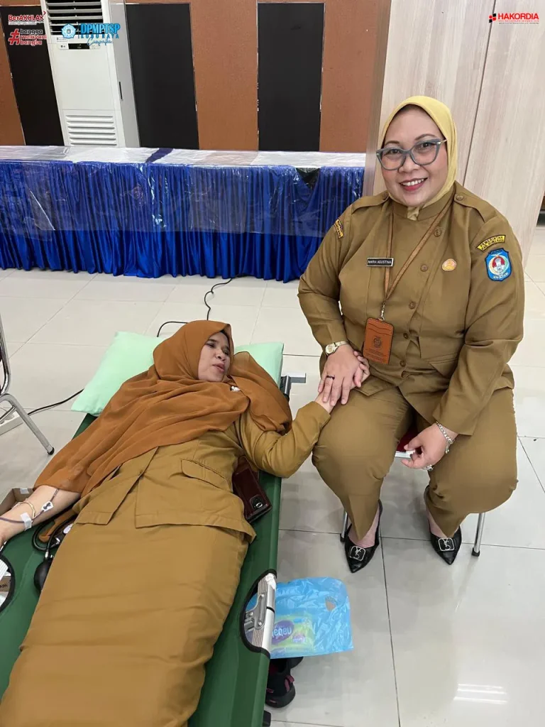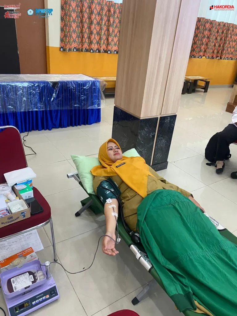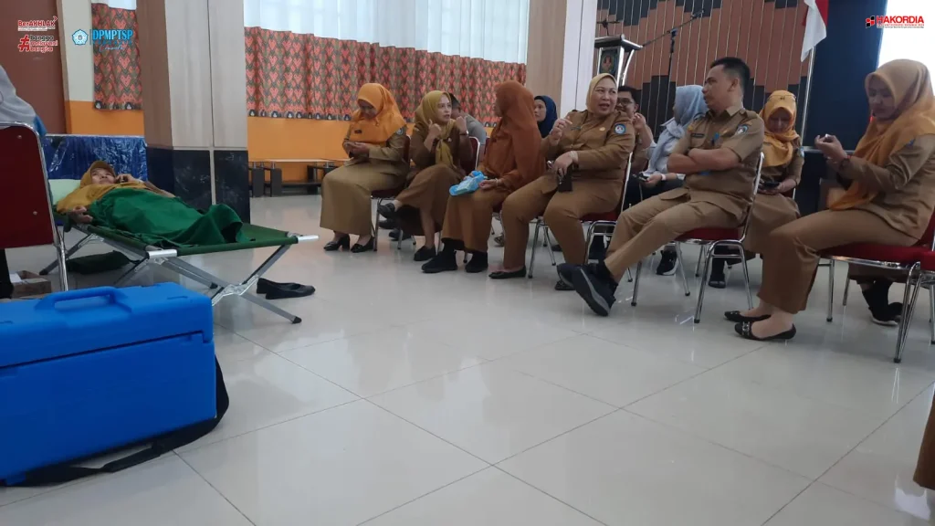 Kepala Dinas Penanaman Modal dan Pelayanan Terpadu Satu Pintu (DPMPTSP) Kabupaten Kubu Raya, Ibu Maria Agustina, SE, M.Si beserta dengan seluruh pejabat dan staff ikut serta dalam acara Donor Darah. Kegiatan ini dilaksanakan di Aula Praja Kantor Bupati Kubu Raya pada hari Senin, 2 Desember 2024.