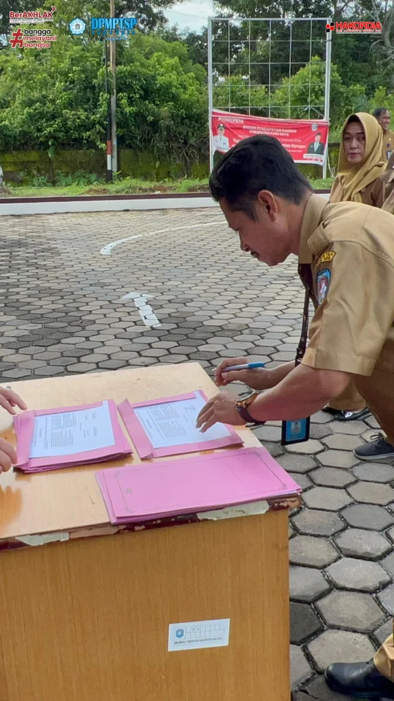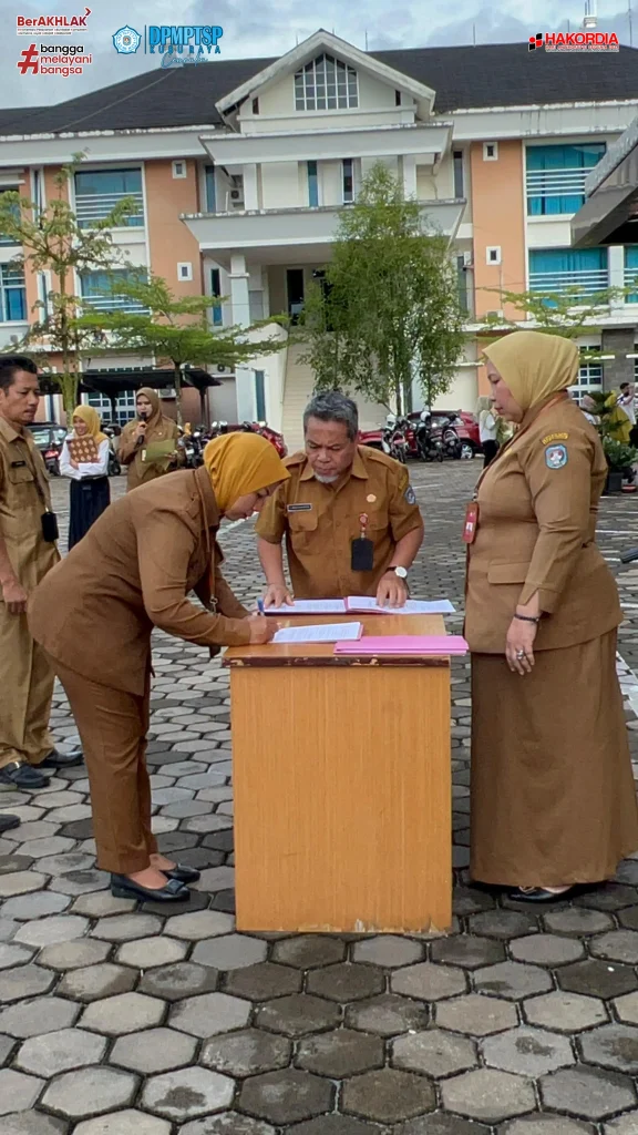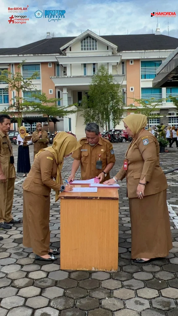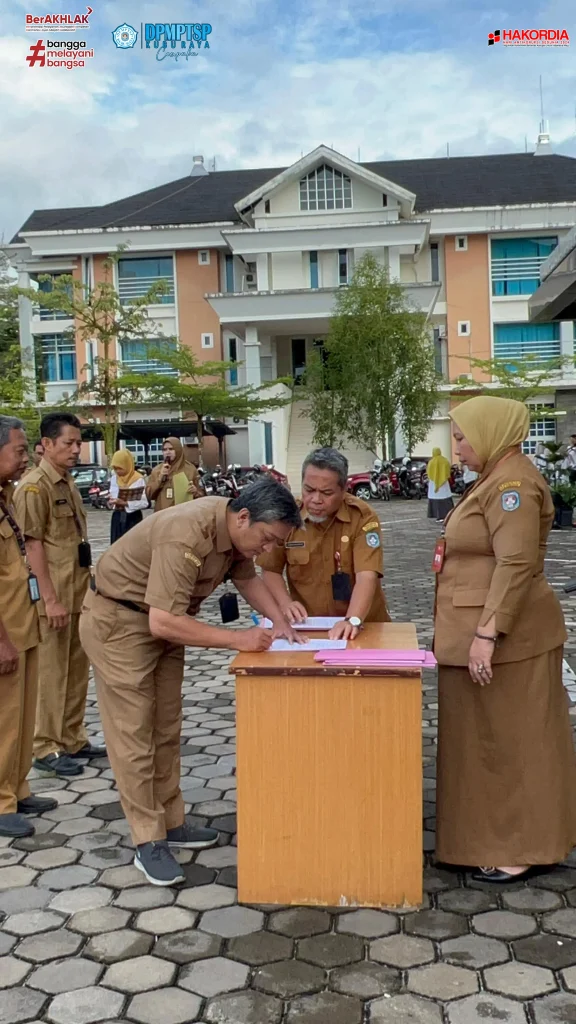 Dinas Penanaman Modal dan Pelayanan Terpadu Satu Pintu (DPMPTSP) Kabupaten Kubu Raya melaksanakan kegiatan Penandatanganan Pakta Integritas dan Perjanjian Kinerja Tahun 2025. Kegiatan ini dipimpin langsung oleh Maria Agustina, SE., M.Si selaku Kepala Dinas Penanamanan Modal dan PTSP Kubu Raya setelah dilaksanakannya Apel Senin Pagi.