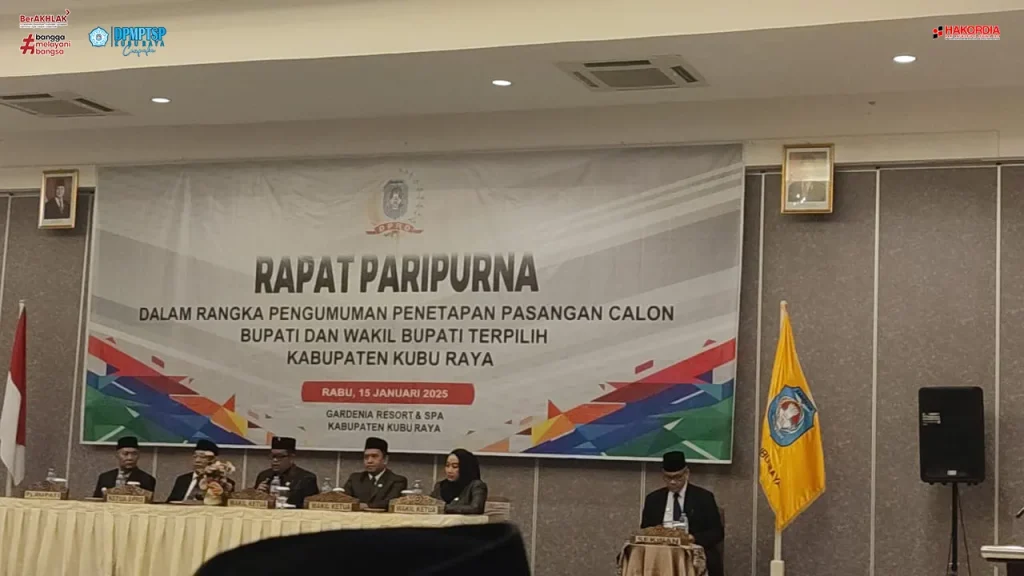 Kepala Dinas Penanaman Modal dan Pelayanan Terpadu Satu Pintu (DPMPTSP) Kabupaten Kubu Raya, Ibu Maria Agustina, SE, M.Si menghadiri kegiatan Rapat Paripurna Dalam Rangka Penetapan Pasangan Bupati dan Wakil Bupati Terpilih Kabupaten Kubu Raya.