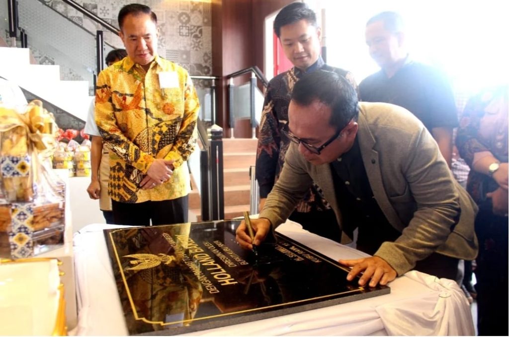Kepala Dinas Penanaman Modal dan Pelayanan Terpadu Satu Pintu (DPMPTSP) Kabupaten Kubu Raya, Ibu Maria Agustina, SE, M.Si menghadiri kegiatan Grand Opening Holland Bakery Kubu Raya pada hari Sabtu, 15 Maret 2025. Kegiatan ini juga di hadiri oleh Bupati Kubu Raya, Bapak H. Sujiwo, SE, M.Sos sekaligus meresmikan Holland Bakery Kubu Raya.