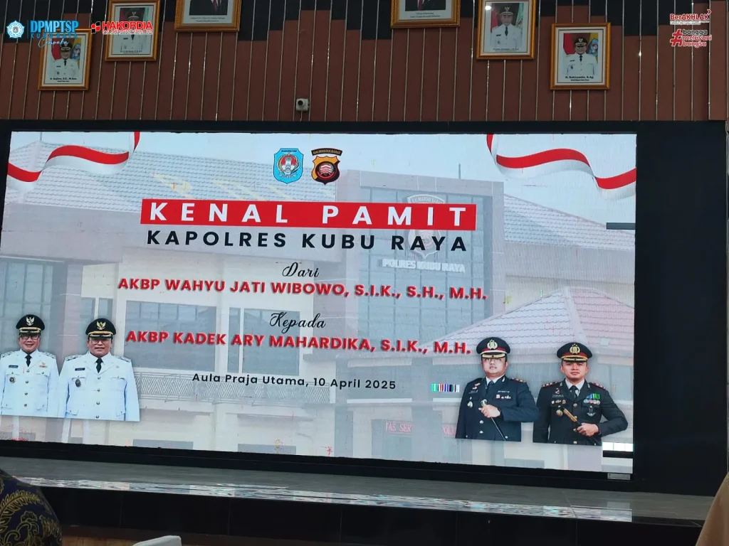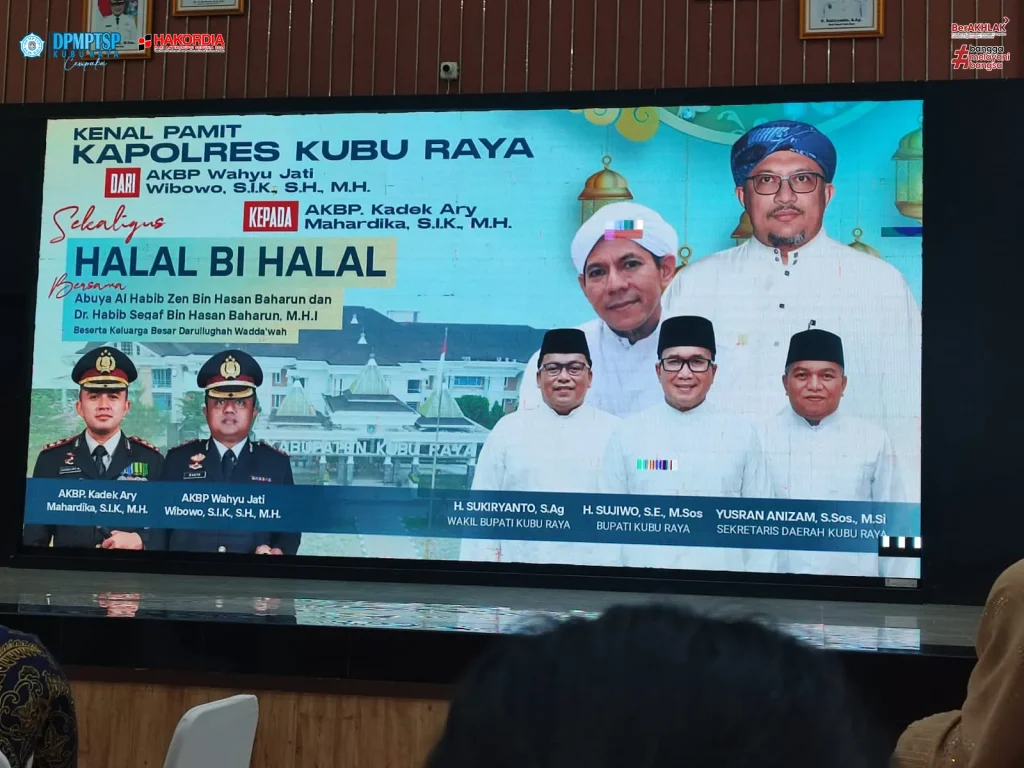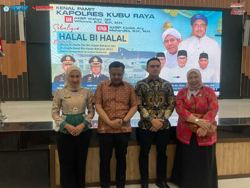 Kepala Dinas Penanaman Modal dan Pelayanan Terpadu Satu Pintu (DPMPTSP) Kabupaten Kubu Raya, Ibu Maria Agustina, SE, M.Si menghadiri kegiatan Kenal Pamit Kapolres Kubu Raya Sekaligus Halal Bihalal pada hari Kamis, 10 April 2025, bertempat di Aula Bupati Kabupaten Kubu Raya.