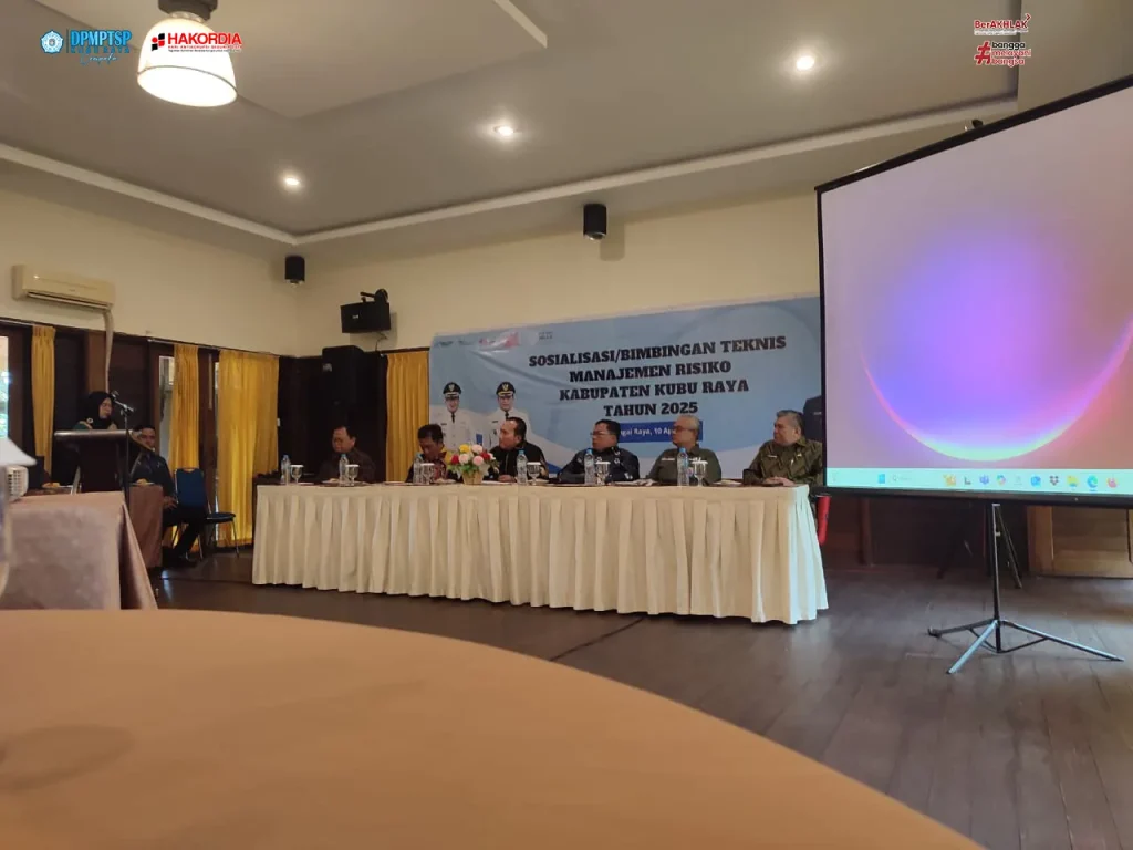 Kepala Dinas Penanaman Modal dan Pelayanan Terpadu Satu Pintu (DPMPTSP) Kabupaten Kubu Raya, Ibu Maria Agustina, SE, M.Si menghadiri kegiatan Sosialisasi / Bimbingan Teknis Manajemen Risiko Kabupaten Kubu Raya Tahun 2025.