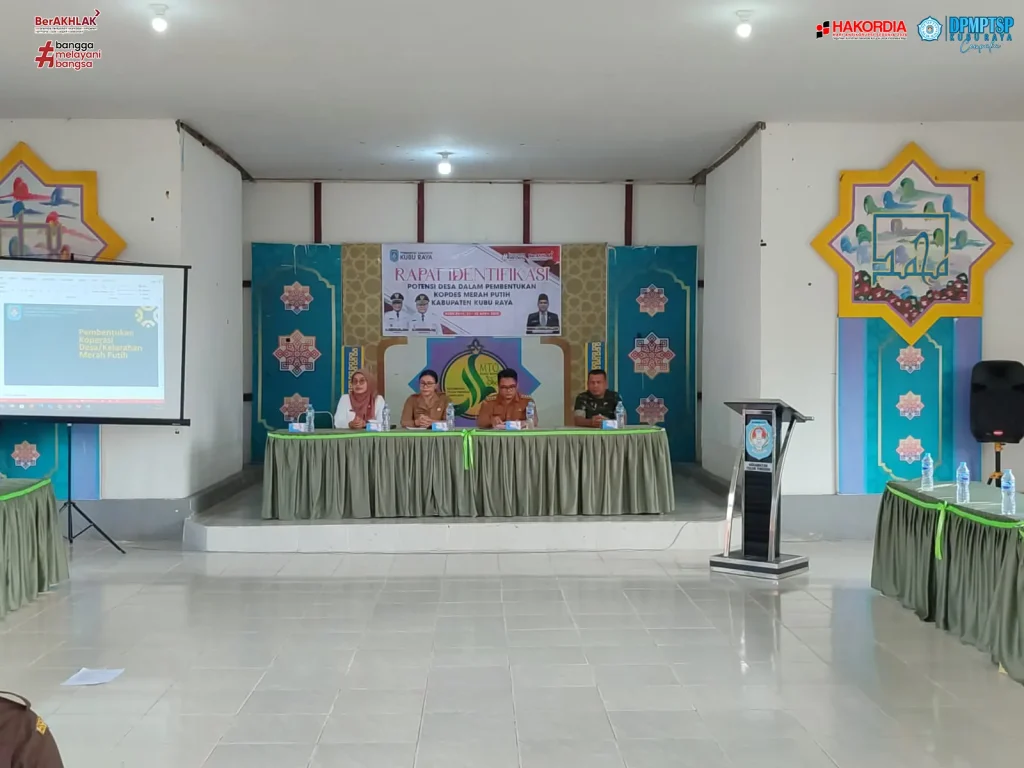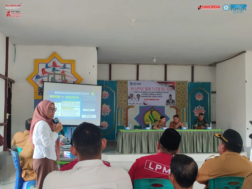 Penata Kelola Penanaman Modal Ahli Madya DPMPTSP Kubu Raya, Bapak Adi Mulyono, ST mengikuti kegiatan Rapat Rapat Identifikasi Potensi Desa Dalam Rangka persiapan pembentukan Kopdes Merah Putih di Gedung Serbaguna Kecamatan Teluk Pakedai.