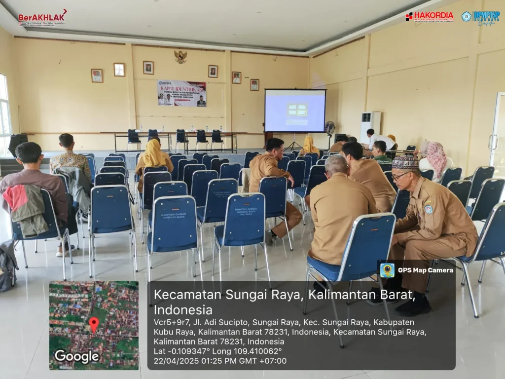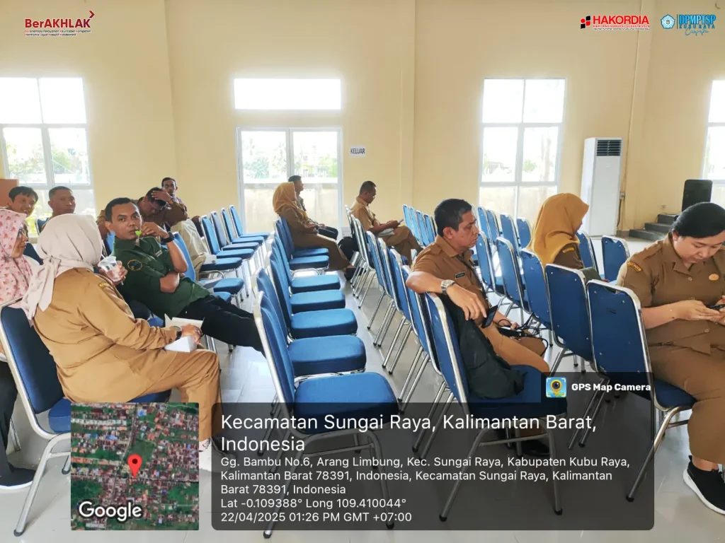 Penata Kelola Penanaman Modal Ahli Muda DPMPTSP Kubu Raya, Ibu Kiki Permatasari, SE dan Pengelola Kerjasama dan Investasi, Bapak Riduwansyah, A.Md menghadiri kegiatan Rapat Identifikasi Potensi Desa Dalam Pembentukan KOPDES Merah Putih Kecamatan Sungai Raya, Kabupaten Kubu Raya.