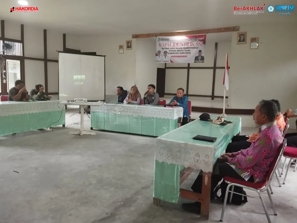 Penata Kelola Penanaman Modal Ahli Madya DPMPTSP Kubu Raya, Bapak Adi Mulyono, ST bersama dengan Staff Penanaman Modal, Fajar Mahardika, SE menghadiri Kegiatan Rapat Identifikasi Potensi Desa Dalam Rangka Persiapan Pembentukan Kopdes Merah Putih.