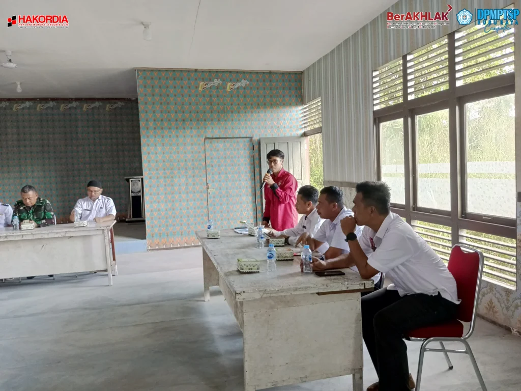 Penata Kelola Penanaman Modal Ahli Madya DPMPTSP Kabupaten Kubu Raya, Bapak Herdi, S.ST., M.Sos bersama dengan Staff Penanaman Modal, Bapak Supardi, SE menghadiri kegiatan Rapat Identifikasi Potensi Desa dalam Rangka Persiapan pembentukan Kopdes Merah Putih.