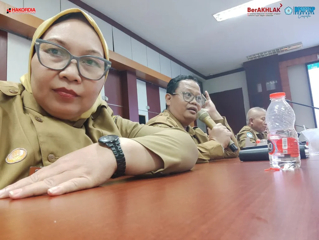 Kepala Dinas Penanaman Modal dan Pelayanan Terpadu Satu Pintu (DPMPTSP) Kabupaten Kubu Raya, Ibu Maria Agustina, SE., M.Si menghadiri kegiatan Rapat Evaluasi dan Optimalisasi Layanan Bank Kalbar. Kegiatan dilaksanakan pada hari Senin, 5 Mei 2025 di Ruang Rapat Bupati Kubu Raya.