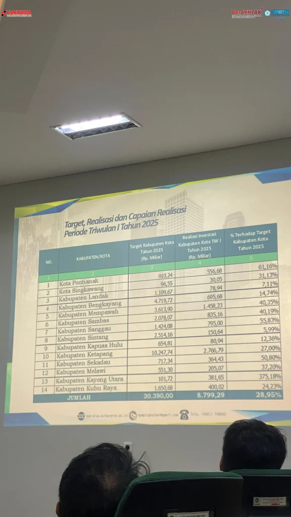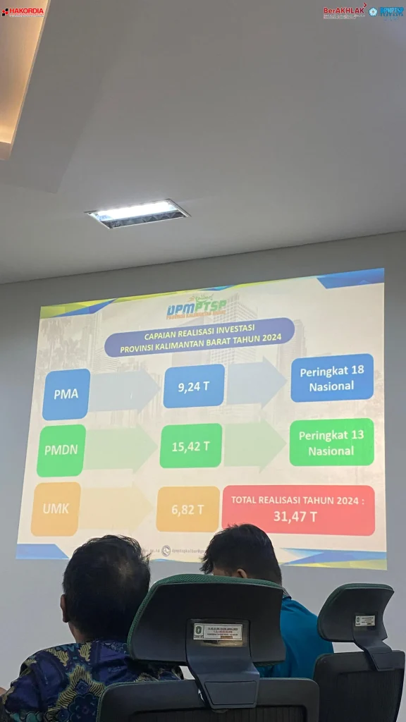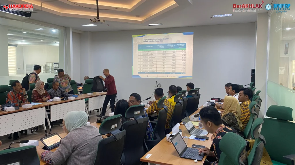Kepala Dinas Penanaman Modal dan Pelayanan Terpadu Satu Pintu (DPMPTSP) Kabupaten Kubu Raya, Ibu Maria Agustina, SE., M.Si bersama dengan Jabatan Fungsional Penanaman Modal mengikuti kegiatan Rapat Rekonsiliasi Data Realisasi Penanaman Modal Kab/Kota se Kalbar Tahun 2024 dan Pembahasan Target Realisasi Investasi Nasional utk Kalbar dan RPJMD Kab/Kota Tahun 2025 di Ruang Rapat DPMPTSP Prov Kalbar,, Kamis 8 Mei 2025