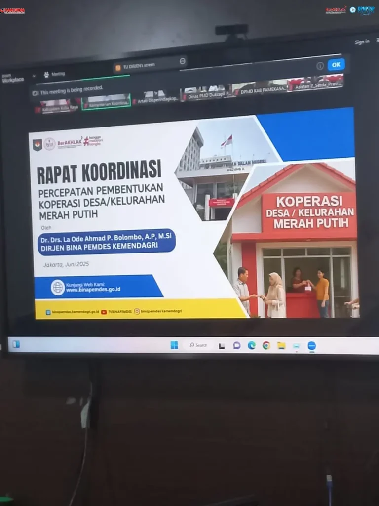 Penata Perijinan Ahli Muda DPMPTSP Kubu Raya, Bapak Jimmi Ibrahim, SE., MM menghadiri kegiatan Rapat Koordinasi Percepatan Pembentukan Koperasi Desa / Kelurahan Merah Putih pada hari Rabu, 11 Juni 2025. Kegiatan dilaksanakan oleh Dirjen Bina Pemdes Kemendagri, Dr. Drs. La Ode Ahmad P. Bolombo, A.P., M.Si