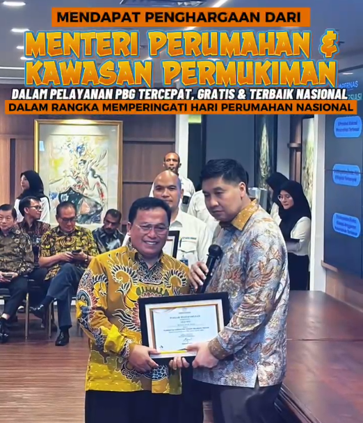 Penghargaan ini diberikan atas pelayanan PBG yang tercepat dan terbaik secara nasional.