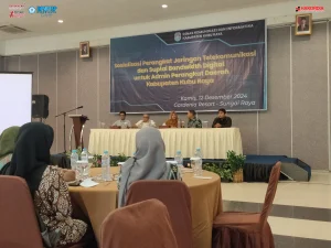 Staff Perizinan dan Non Perizinan Divisi Information Technology (IT) DPMPTSP Kubu Raya, Hendra, S.Kom menghadiri kegiatan Sosisalisasi Perangkat Jaringan Telekomunikasi dan Suplai Bandwith Digital Untuk