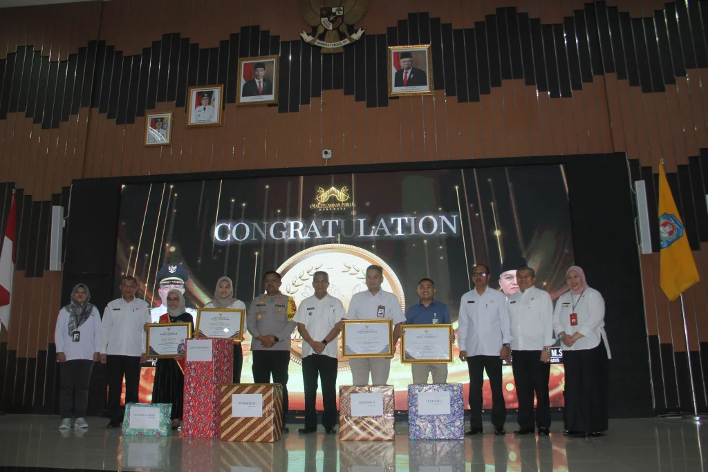 Bersama Kapolres Wahyu Jati Wibowo dan Sekretaris Daerah Yusran Anizam, Pj Bupati Syarif Kamaruzaman menyerahkan penghargaan Loket Terbaik I kepada BPJS Ketenagakerjaan, Loket Terbaik II Bank Kalbar Kubu Raya, dan Loket Terbaik III Bapenda Kubu Raya. Adapun Loket Terfavorit Bapenda Kubu Raya dan Petugas Layanan Terbaik Anggi Saputri (BPJS Ketenagakerjaan).