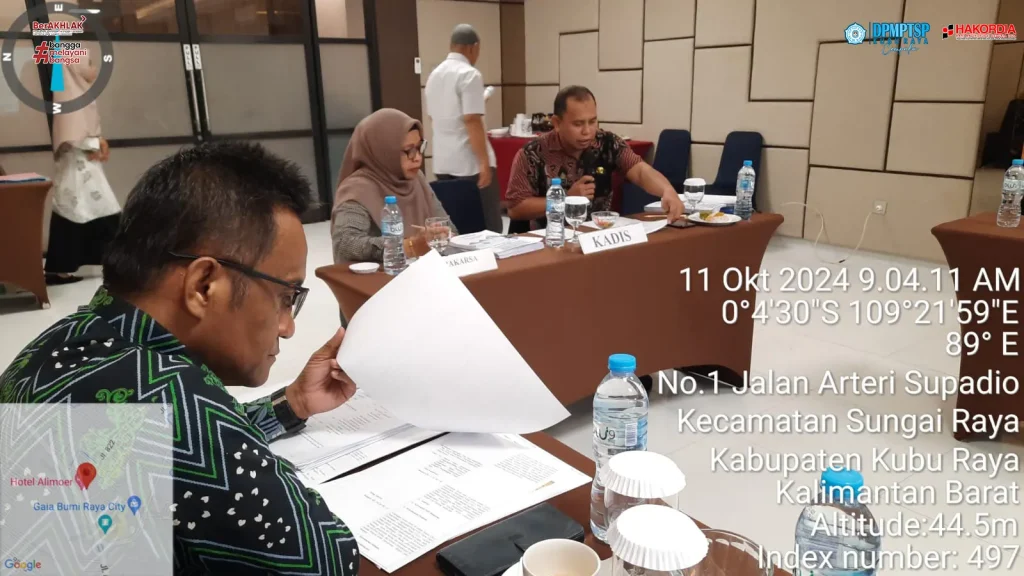 Penata Perijinan Ahli Madya DPMPTSP Kubu Raya, Bapak Khatim Asy’ari, ST, MT Mewakili Kadis DPMTSP Kubu Raya menghadiri rapat Pembahasan Formulir UKL UPL pembangunan komp. Pergudangan Prisma Jaya lokasi Desa pal IX kec. Sungai Kakap Kab. Kubu Raya. Kegiatan dilaksanakan pada hari Jumat, 11 Oktober 2024