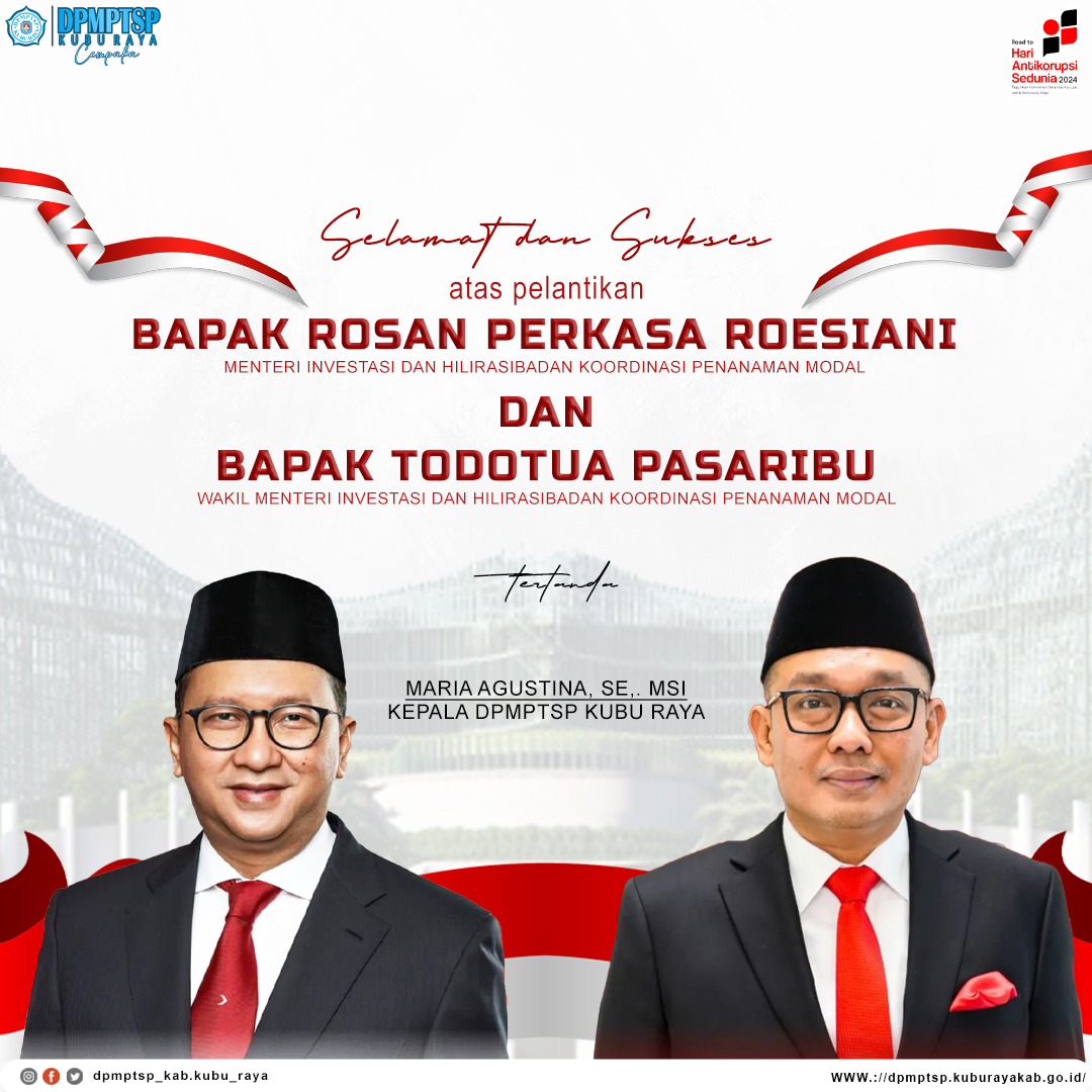 DPMPTSP Mengucapkan selamat dan sukses kepada Bapak rosanroeslani atas pelantikan sebagai Menteri