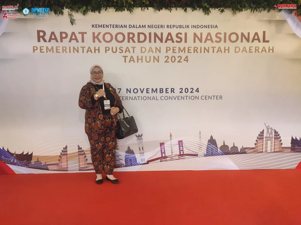 Kepala Dinas Penanaman Modal dan Pelayanan Terpadu Satu Pintu (DPMPTSP) Kabupaten Kubu Raya, Ibu Maria Agustina, SE, M.Si menghadiri kegiatan Rapat Koordinasi Nasional Pemerintah Pusat dan Pemerintah Daerah Tahun 2024. Kegiatan dilaksanakan pada tanggal 7 November 2024 di Sentul Internasional Convention Center (SICC), Kabupaten Bogor, Provinsi Jawa Barat.