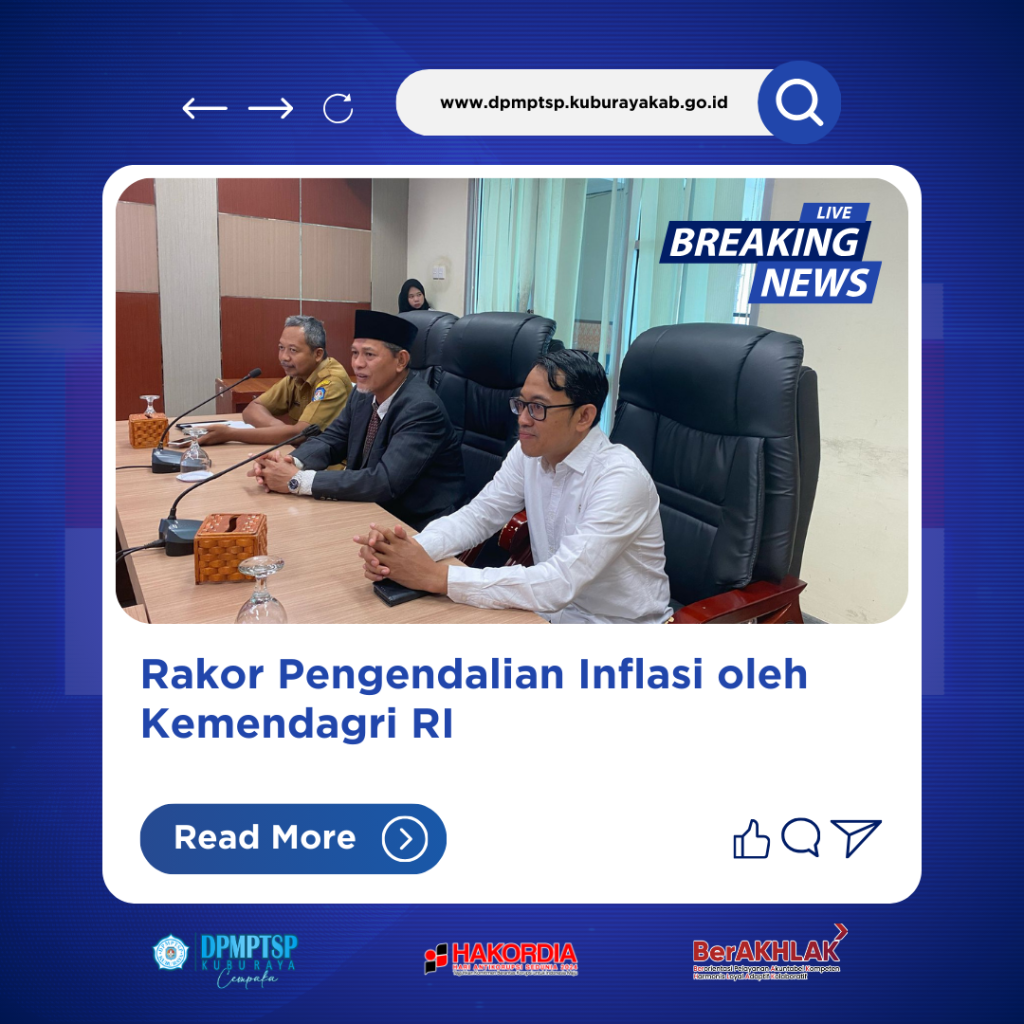 Penata Kelola Penanaman Modal Ahli Madya DPMPTSP Kubu Raya, Bapak Adi Mulyono, ST mengikuti kegiatan Rakor Pengendalian Inflasi oleh Kemendagri RI melalui Zoom Meeting tanggal 4 Maret 2025. Rapat dipimpin oleh Mendagri, dengan narasumber dari BPS, Kantor Staf Presiden, Bulog, Kementrian Perdagangan, Kementrian Pertanian dan Mabes TNI.Rapat dirangkaikan dengan kegiatan Rapat Koordinasi Akselerasi Sertifikasi Produk Halal.