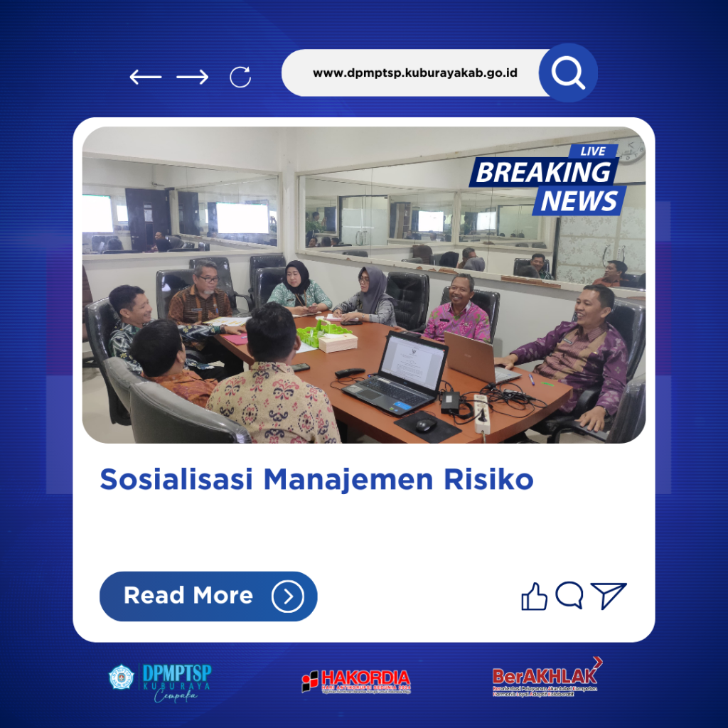 Dinas Penanaman Modal dan Pelayanan Terpadu Satu Pintu (DPMPTSP) Kabupaten Kubu Raya melaksanakan kegiatan Sosialisasi Manajemen Risiko di Lingkungan Dinas