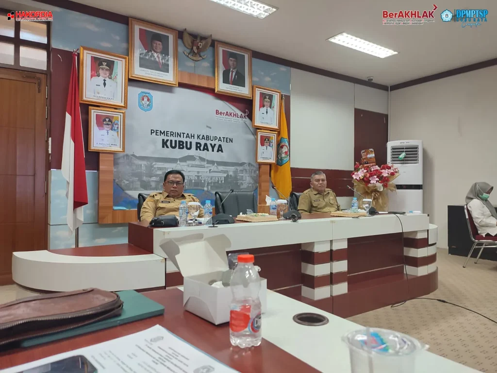 Kepala Dinas Penanaman Modal dan Pelayanan Terpadu Satu Pintu (DPMPTSP) Kabupaten Kubu Raya, Ibu Maria Agustina, SE., M.Si menghadiri kegiatan Rapat Evaluasi dan Optimalisasi Layanan Bank Kalbar. Kegiatan dilaksanakan pada hari Senin, 5 Mei 2025 di Ruang Rapat Bupati Kubu Raya.