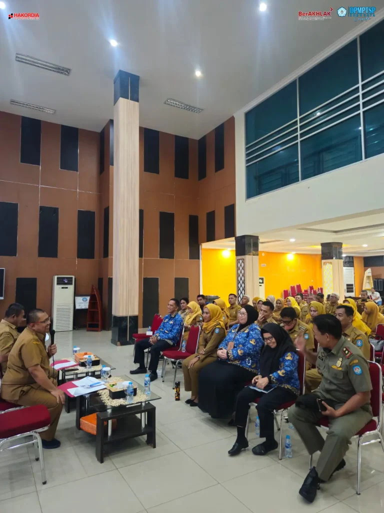 Kepala Dinas Penanaman Modal dan Pelayanan Terpadu Satu Pintu (DPMPTSP) Kabupaten Kubu Raya, Ibu Maria Agustina, SE., M.Si bersama dengan Penata Kelola Penanaman Modal Ahli Muda, Ibu Yulida, S.Kom menghadiri kegiatan Rapat Persiapan HUT Kabupaten Kubu Raya ke 18.