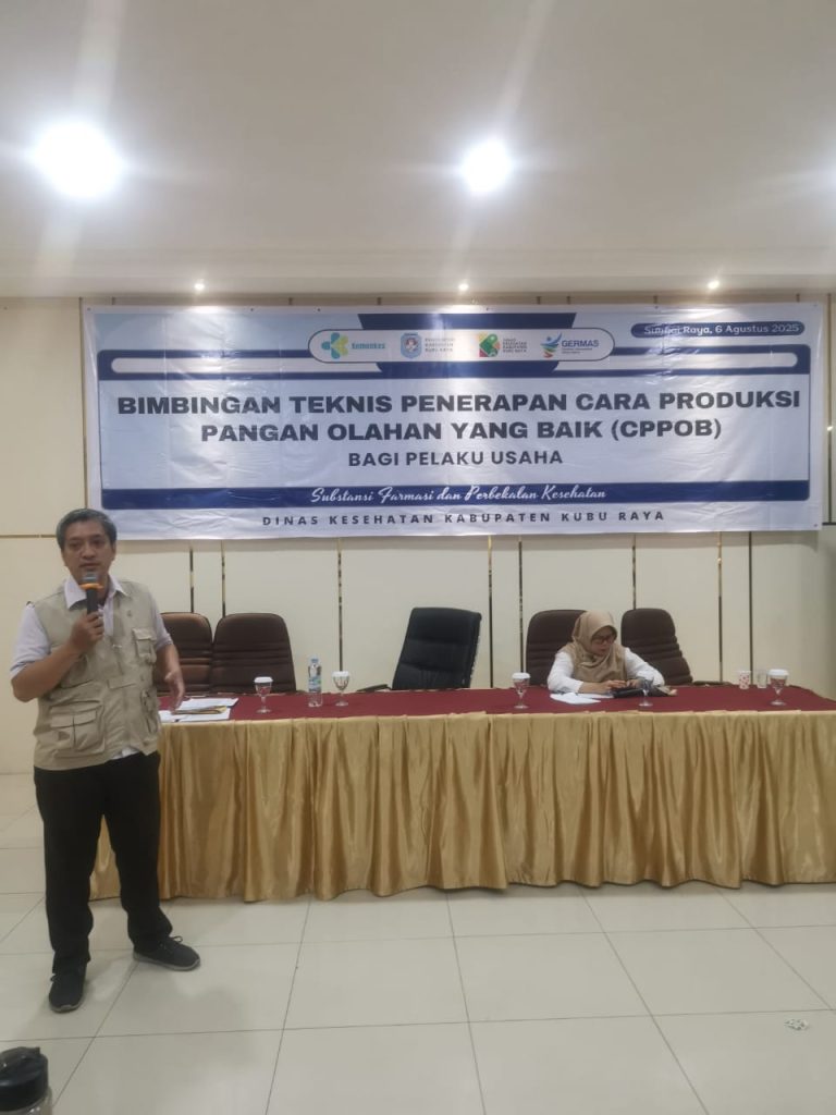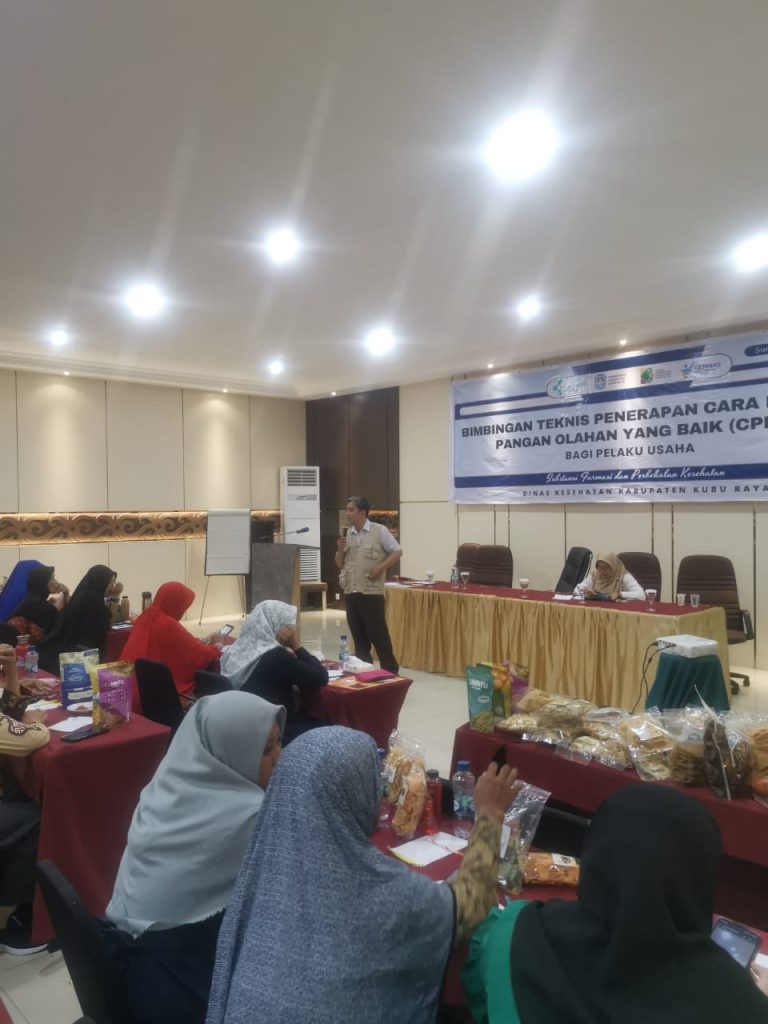 Penata Perijinan Ahli Muda Bapak Jimmi Ibrahim, SE.MM menjadi Narasumber Bimbingan Teknis Penerapan Cara Produksi Pangan Olahan yg Baik (CPPOB) bagi Pelaku Usaha IRTP yg diselenggarakan oleh Dinas Kesehatan Kubu Raya di Hotel Dangau
