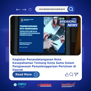 Penata Kelola Penanaman Modal Ahli Madya DPMPTSP Kubu Raya, Bapak Adi Mulyono, ST Mengikuti kegiatan Penandatanganan Nota Kesepahaman tentang kerja sama dalam pengawasan penyelenggaraan perizinan
