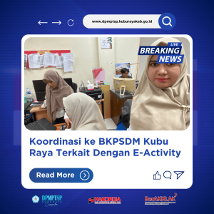 Staff Sekretariat DPMPTSP Kabupaten Kubu Raya, Ibu Etika Ramdan, A.Md melaksanakan Koordinasi ke BKPSDM Kabupaten Kubu Raya terkait dengan E-Activity. Kunjungan koordinasi dilaksanakan pada hari