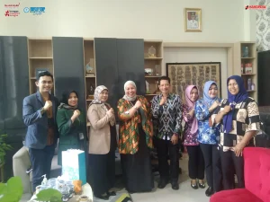 Kepala Dinas Penanaman Modal dan Pelayanan Terpadu Satu Pintu (DPMPTSP) Kabupaten Kubu Raya, Ibu Maria Agustina, SE, M.Si beserta Sekdin dan Staff menyambut kunjungan dari