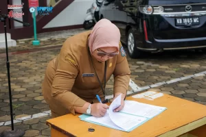 Kepala Dinas Penanaman Modal dan Pelayanan Terpadu Satu Pintu ( DPMPTSP ) Kabupaten Kubu Raya, Ibu Maria Agustina, SE, M.Si beserta dengan jajarannya menghadiri kegiatan